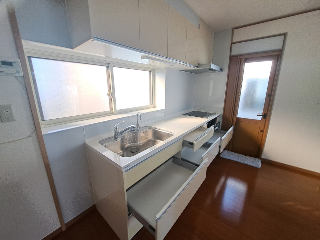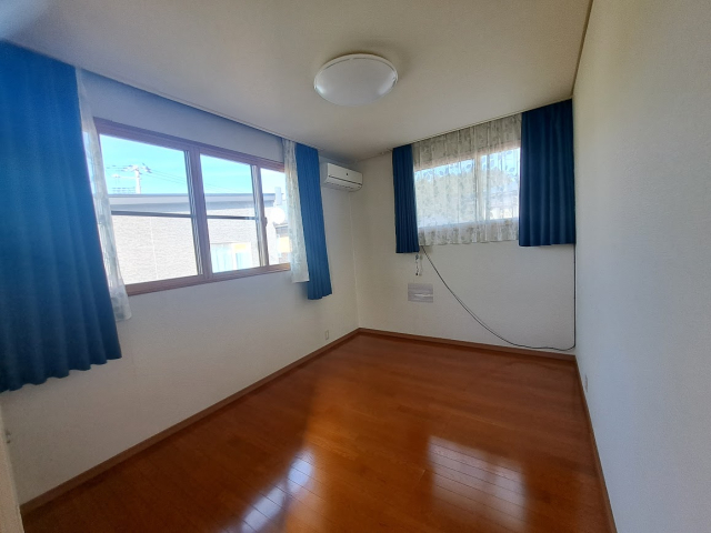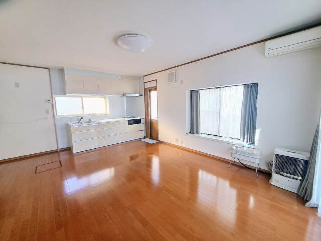 前面には、二台分のカーポートもあり、雪の日も、雨の日もとっても助かります。家の中は、1Fに和室と、リビングキッチン、水回り、2Fは洋室が2つでコンパクトな住宅です。