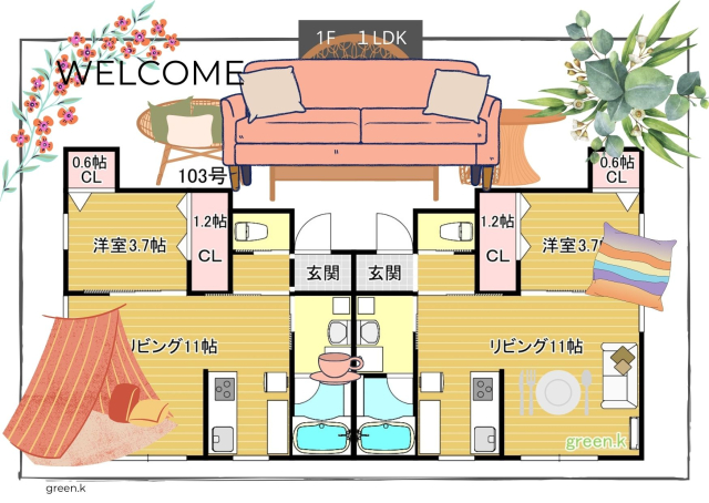 "WELCOM"の意味は’ようこそ’ですからアパート名も覚えやすいです。