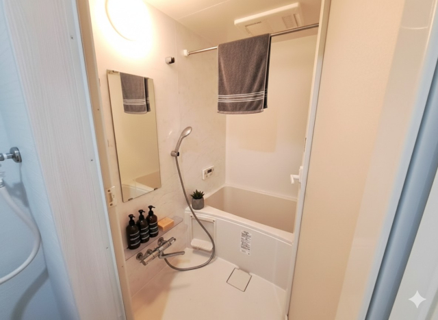 浴室乾燥付のバスとおしゃれなシャワーヘッドが自慢です