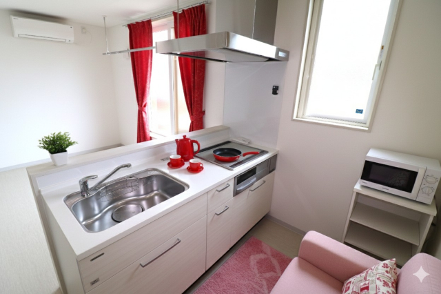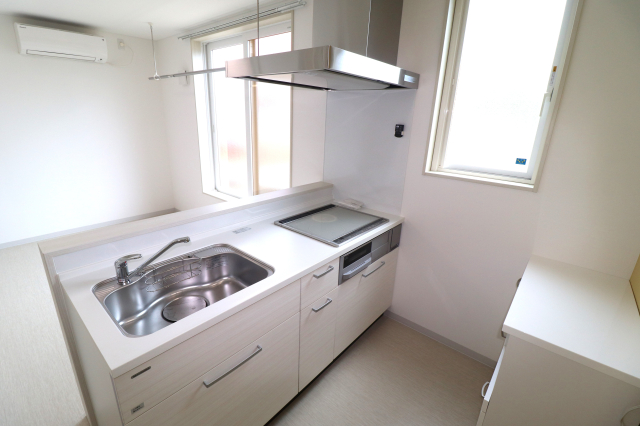 | その他 | エアコン・オール電化・インターネット無料(CATV)・収納・システムキッチン・IHコンロ2口・食器棚・シューズボックス・TVドアホン・デジタルキー・照明器具・SW洗面化粧台・浴室乾燥機・宅配ボックス・駐輪場・専用ゴミ置場 (1F駐車場なし 2Fのみサンルーム・屋根付き駐車場) |